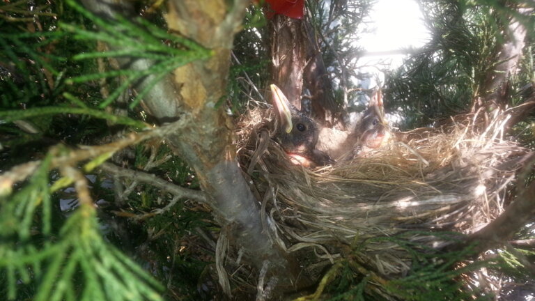 This bird nests in our back yard every year. Well….I guess its not the same bird, but the chicks grow up, & then they come back to lay eggs on the spot.